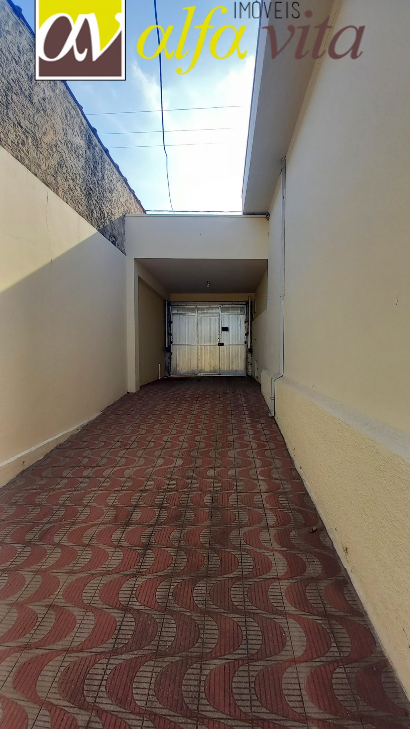 A entrada de garagem dá acesso ao quintal, possibilitando estacionar diversos carros,